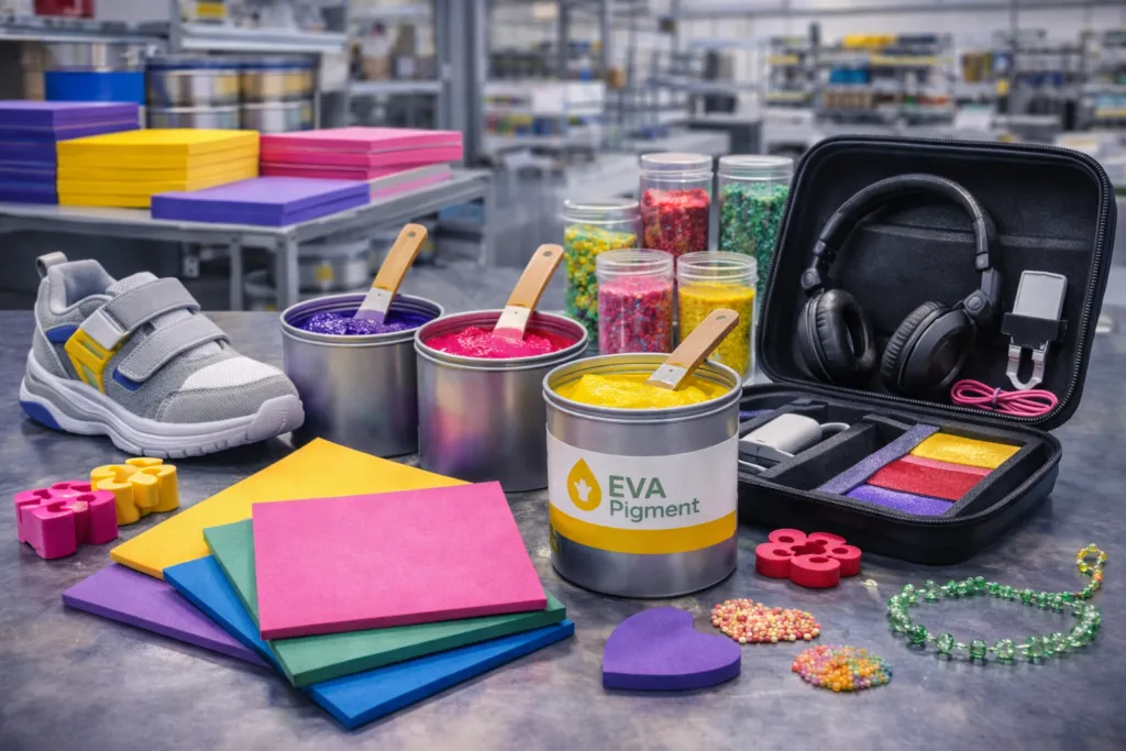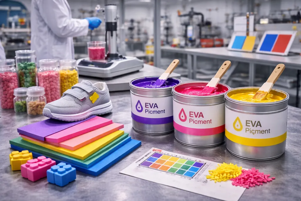 EVA应用在EVA加工条件下保持稳定分散与良好着色效果。 EVA应用概述永固紫(Pigment Violet 23)可广泛应用于EVA材料着色,尤其适用于EVA发泡制品、鞋材及弹性体产品。该颜料具有优异的着色力、良好的分散性能以及稳定的色相表现,在EVA加工过程中能够保持稳定的颜色效果。在EVA发泡、压模及片材加工过程中,PV23能够为制品提供鲜艳且均匀的紫色外观,同时在不同EVA配方体系中保持良好的分散性,使最终产品颜色更加稳定一致。 典型应用产品 EVA拖鞋及鞋底制品EVA广泛应用于拖鞋、凉鞋鞋底及休闲鞋中底等产品,对颜色鲜艳度和稳定性要求较高。永固紫能够提供明亮稳定的紫色效果,并在发泡成型后保持较好的色彩一致性。 EVA运动垫及地垫用于瑜伽垫、运动垫、儿童爬行垫及防护垫等EVA泡棉制品。PV23能够在发泡材料中保持均匀分散,使制品表面呈现柔和且稳定的紫色外观。 EVA包装缓冲材料适用于电子产品、工具箱及精密器件的缓冲包装材料。永固紫能够为EVA包装材料提供稳定的着色效果,同时兼顾产品外观一致性和加工适应性。 EVA玩具及工艺制品EVA常用于儿童玩具、拼图、手工材料及装饰性发泡制品。永固紫具有较高着色力,可在较低添加量条件下实现鲜艳稳定的颜色表现。 适用材料永固紫(Pigment Violet 23)适用于多种EVA相关材料体系,在不同配方中均能保持稳定的色彩表现,并具有良好的分散性能,使发泡制品颜色更加均匀稳定。 EVA发泡材料常用于拖鞋、鞋底、运动垫及防护垫等产品。 EVA弹性体材料适用于柔性片材、缓冲材料及部分工业制品。 EVA包装材料常用于电子产品缓冲包装、保护内衬及定制包装部件。 EVA工艺及玩具材料用于拼图、手工材料及装饰性发泡制品。 EVA加工工艺 发泡成型在EVA发泡加工过程中,颜料通过均匀分散进入材料体系,使制品在发泡后仍能保持稳定一致的颜色表现。 压模成型适用于拖鞋、鞋底及各类EVA模压制品生产。PV23在压模加工条件下能够保持良好的色相稳定性。 挤出加工适用于EVA片材、板材及部分卷材生产,在连续加工过程中可提供均匀稳定的着色效果。 应用特点永固紫在EVA应用中具有优异的色彩表现和加工稳定性,在不同EVA配方体系中能够保持良好的分散性和着色强度,使制品获得均匀、稳定且持久的紫色效果。 高着色力在较低添加量条件下即可获得理想的紫色效果。 良好分散性在EVA材料体系中能够均匀分散,使发泡制品颜色更加稳定一致。 良好加工稳定性能够适应EVA发泡、压模及挤出等加工条件,保持稳定色相表现。 色彩稳定性在不同EVA材料和配方体系中均能保持稳定的紫色外观。