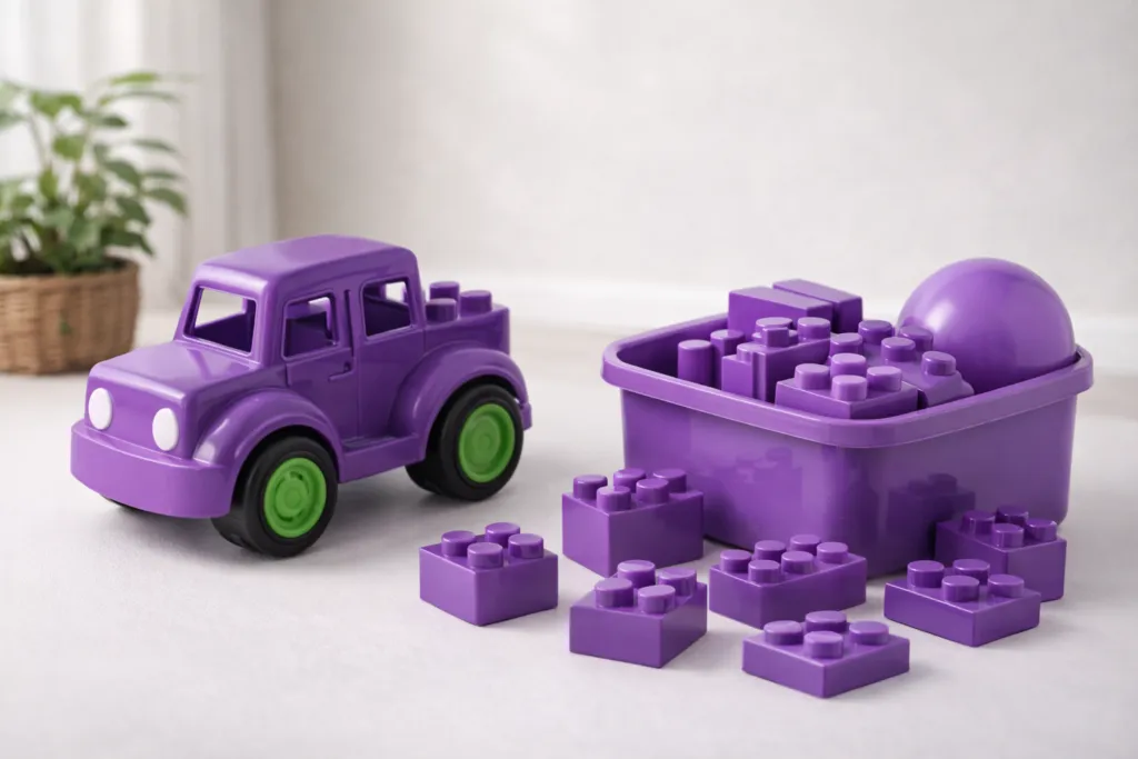 玩具产品对色彩鲜艳度和稳定性要求较高。永固紫具有较高的着色力,在较低添加量条件下即可实现明亮稳定的紫色效果,同时保持良好的加工稳定性。